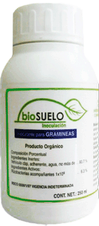 CONTENIDO: bioSUELO® GRAMÍNEAS está formulado a una concentración 1 x 106 UFC de microorganismos benéficos aeróbicos y anaerobios de los géneros: Azotobacter, Azospirillum, Clostridium, Arthrobacter, Rhodobacter, Bacillus y Rhodococcus, estabilizados en un sustrato líquido mucilaginoso, compuesto por polisacáridos, oligosacáridos y polipéptidos naturales que le confiere estabilidad al producto, facilita el manejo al momento de la aplicación sobre la semilla y acelera el reinicio de la actividad microbiana en el suelo. Más un sistema de adherencia que asegura la permanencia de los microorganismos en la semilla.