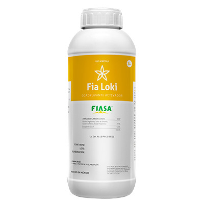 FIA LOKI es un coadyuvante especializado para herbicidas e insecticidas que hace más eficiente la aplicación de estos, formulado a base de sulfato de amonio, ácidos polihidroxicarboxílicos, ácido éster fosfórico, ácido propiónico, antiespumantes y agentes humectantes para privilegiar la resistencia al secado del agroquímico.