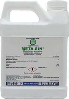 META-SIN® combate el picudo del chile en cultivos de chile y chile bell. META-SIN® está creado para que los conidios de Metarhizium anisopliae se adhieran al insecto, germinen y penetren su cutícula, hasta llegar al hemocele, diseminándose por todo el interior del insecto, causándole su muerte.