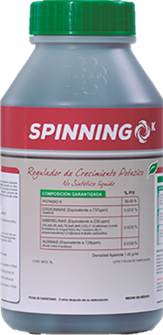 Como actúa SpinningK: Potencializa y activa el metabolismo de las plantas, facilitando al potasio la penetración cuticular, absorción metabólica y su translocación a los centros de mayor demanda de la planta.