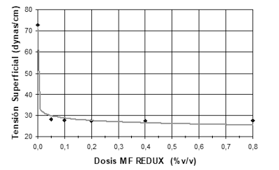 • MF. REDUX es un coadyuvante-hipotensor que reduce la tensión superficial a valores inferiores de 30 dinas/cm2, característica que le permite al producto presentar los siguientes beneficios: