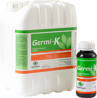 GERMI-K es un nutriente foliar líquido con alta concentración de potasio combinado con L-aminoácidos y fósforo asimilable. Estos componentes pueden intervenir en la planta propiciando una mejor actividad fotosintética, síntesis de proteínas, mayor resistencia a enfermedades, así como el logro de mayor calidad de cosecha.